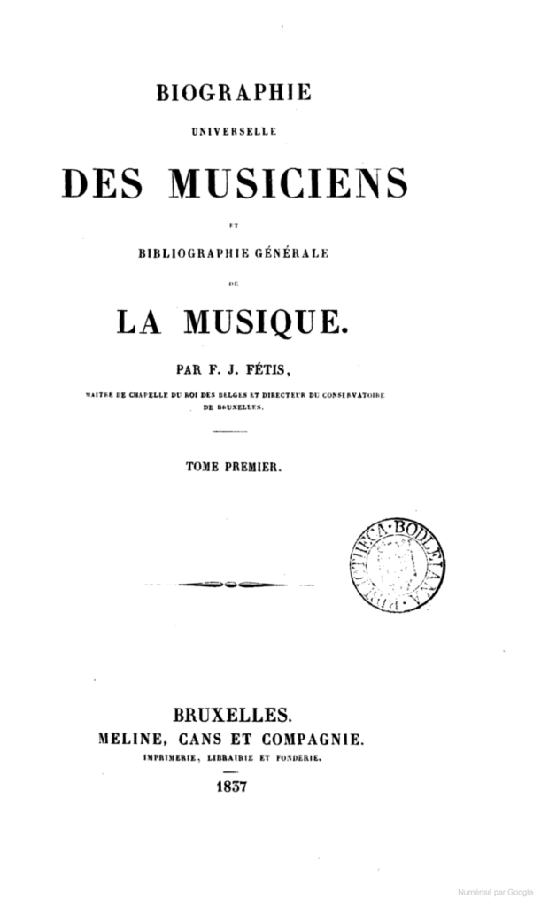 Ironie du sort, souvenez-vous : ces ouvrages rentreront plus tard un des fonds les plus précieux de la Bibliothèque Royale de Belgique, le fonds Fétis, devenue une des plus riches d’Europe. Plus d’un millier d’ouvrages du fonds Fétis de la Bibliothèque royale de Belgique sont aujourd’hui numérisés et accessibles via le catalogue en ligne ou via le portail Belgica.