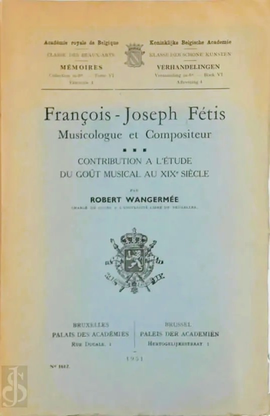 Cette autre carrière aura donc eu à son début et à sa fin un compagnonnage fidèle : François-Joseph Fétis, musicologue et compositeur. Contribution à l’étude du goût musical au XIXe siècle, Bruxelles, Palais des Académies, en 1951.Plus de soixante ans tard, il publiait sa correspondance, François-Joseph Fétis. Correspondance, chez Mardaga (2007).