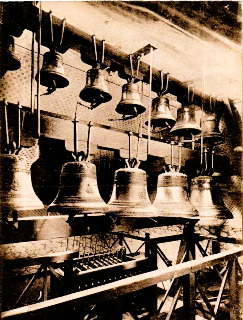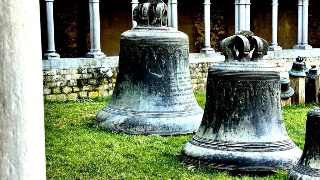 Il faut encore – et à plus d’un titre – évoquer le carillon. Il faut monter 219 marches pour le découvrir, mais comme il ne se visite pas, elles vous seront épargnées… Sachez toutefois qu’Il contient 47 cloches de bronze dans la tour centrale, avec un poids total de 14 tonnes. La plus grosse cloche s’appelle Gertrude et pèse 3200 kilos.