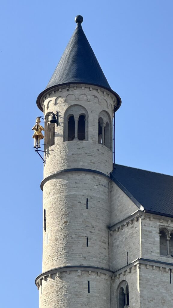 Ne faisant désormais qu’un avec la Collégiale, on évoquera aussi le jacquemard, qui orne la tourelle sud de la Collégiale. Offert à la ville au XV° siècle par Charles le Téméraire, et installé d’abord à l’Hôtel de Ville, il sera identifié à Jean de Montmorency, seigneur de Nivelle, qui avait refusé de se battre contre le Duc de Bourgogne, et moqué notamment dans la chanson Cadet Rousselle: « comme le chien de Jean de Nivelles », qui fuit quand on l’appelle…